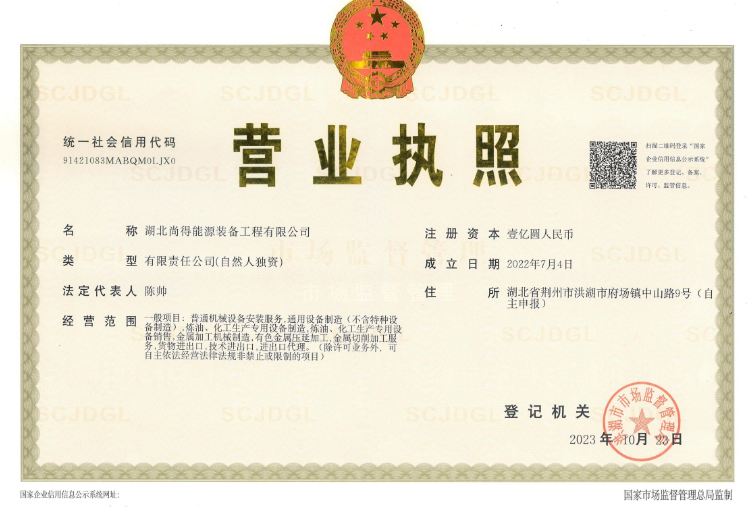 湖北尚得能源装备工程有限公司座落于美丽的洪湖之滨,是闻名全国的石化设备制造之乡┄湖北省府场经济开发区。成立于2022年7月、注册资金壹亿圆整,是一家专业从事一、二、三类压力容器、化工非标设备、塔内件及填料的研制、设计与开发、制造及安装的科技型公司,具备对于精馏提纯、精馏反岐化、低温甲醇洗、冷氢化等项目整体工艺包设计的能力。