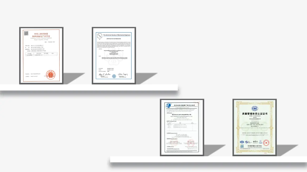 Having been involved in the petrochemical equipment industry for decades, Hubei Changjiang has become a high-quality supplier to China Petroleum&Chemical Corporation (Sinopec), a major supplier for centralized procurement of heat exchangers and air coolers for Sinopec, a first tier material supplier to China National Petroleum Corporation (CNPC), and a preferred supplier to China National Offshore Oil Corporation (CNOOC); Yipaike Strategic Partner; Member unit of China Petroleum and Petrochemical Equipment Industry Association, member unit of China Industrial Anti Corrosion Technology Association, and member unit of the Heat Exchanger Sub Technical Committee of the National Boiler and Pressure Vessel Standardization Technical Committee; HTRI member unit in the United States.