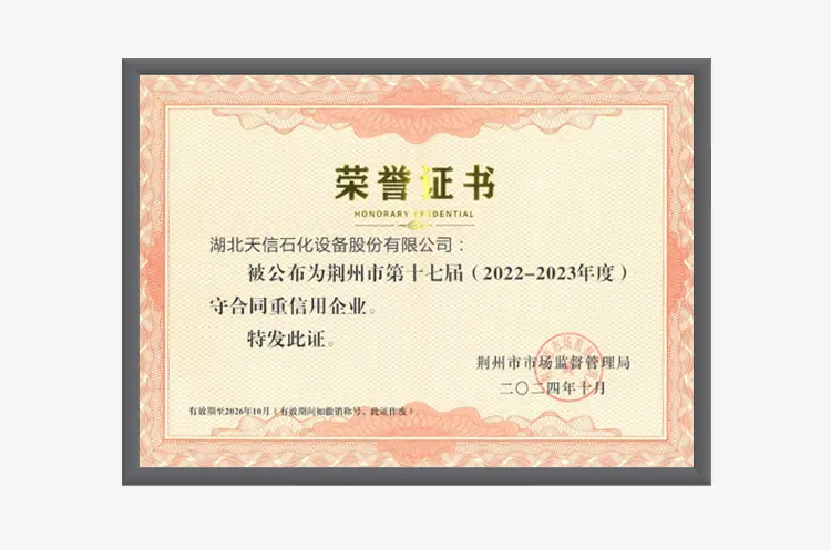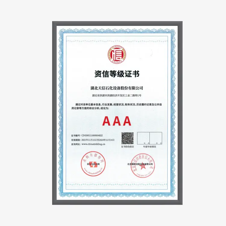 Hubei Tianxin Petrochemical Equipment Co., Ltd. was established on April 18, 2002, located in the beautiful land of fish and rice - Honghu. On June 20, 2016, it established a subsidiary - Honghu Tianxin Electrical Automation Co., Ltd. After more than ten years of development, in 2014, the company built a modern factory building of over 15000 square meters, an office building of over 3000 square meters, and established a new product research and development center and business center. It is a comprehensive petrochemical enterprise that integrates design, research and development, production, sales, and service.