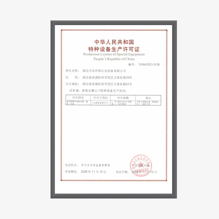 湖北万安环保石化设备有限公司创建于2004年,位于湖北省洪湖经济开发区文泉东路58号,注册资金1.2亿,现有员工210人,公司占地面积13.8万平方米,建筑面积7.8万平方米,配套有无损检测室、实验室、加工中心等各类生产检查设备800多台套,年生产能力3.5亿元。